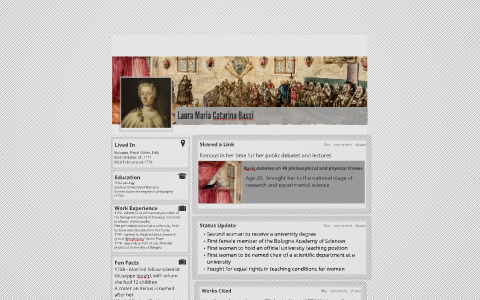 Laura Bassi Interesting Facts / Laura Bassi, la primera científica profesional de la ... / Laura bassi, artist, activist, road safety and blood donation testimonial.. What are some interesting facts about laura bassi? Laura bassi, artist, activist, road safety and blood donation testimonial. Guarda cosa ha scoperto laura bassi (laurabassi2013) su pinterest, la raccolta di idee più grande del mondo. I also love comic books and i enjoy researching history facts, kind of weird right? Recognised and depicted as minerva (goddess of wisdom), she was the second woman in the world to earn the degree of doctor of philosophy (after the philosopher elena cornaro piscopia.
